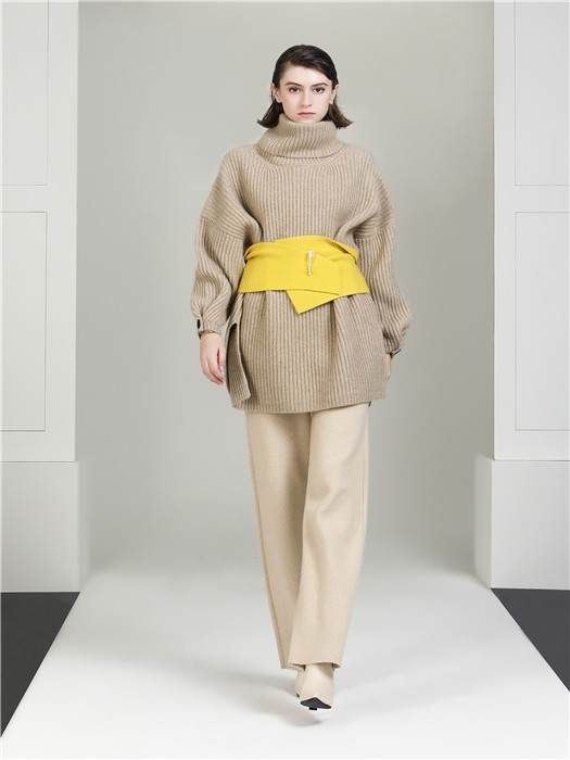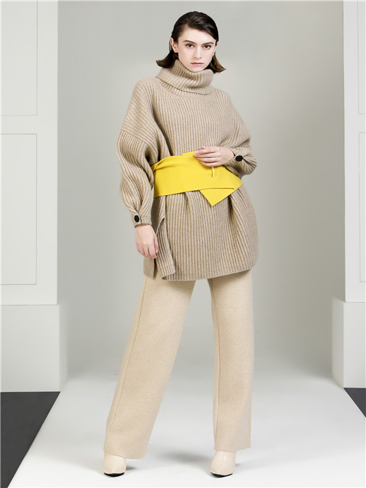 运用扣子去做袖子的收口小细节,精致又俏皮!全件的显瘦织纹撑起强大的气场 !